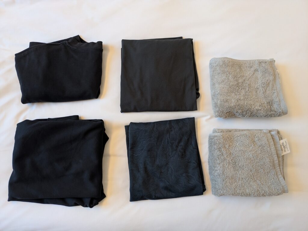 表側にtシャツ4枚を入れて、裏側にタオルを2枚いれる。