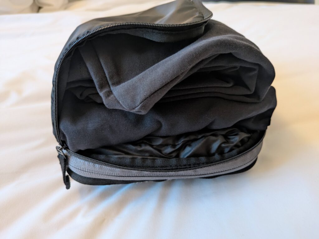 何ならまだまだ収納する余地があるしこの商品は圧縮はおまけ程度で、細かいものをまとめてコンパクトにするのに適しているんだと思う。